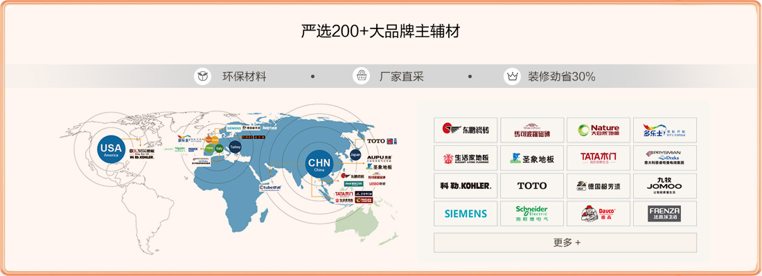 强大的设计与施工团队 严选200+大品牌主辅材